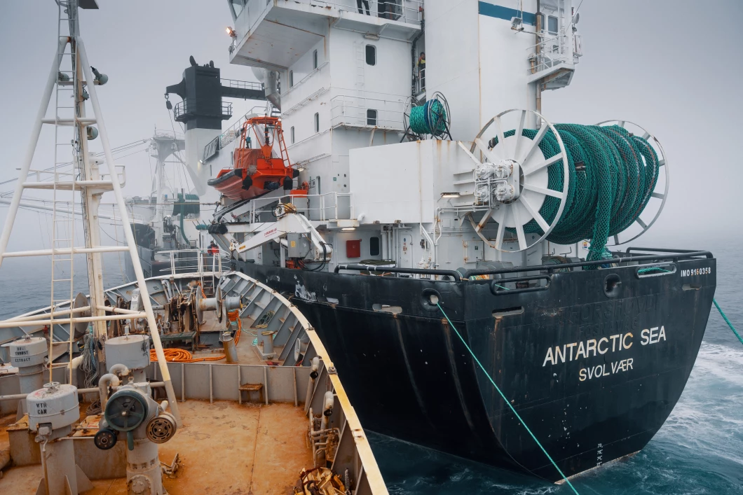 Pendant plus de cinq heures, le navire de Paul Watson a perturbé les opérations de pêche au krill menées par deux chalutiers industriels appartenant à Aker Qrill, en intervenant à plusieurs reprises pour les empêcher de pêcher.