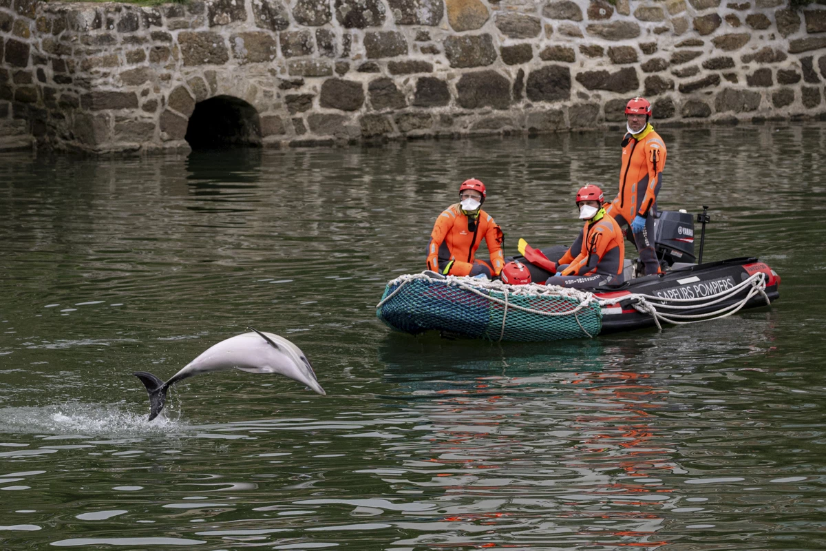 Les manœuvres ne peuvent être réalisées qu'à marée haute pour avoir suffisamment de profondeur dans la rivière et faciliter le guidage des petits cétacés vers la sortie du golfe du Morbihan.