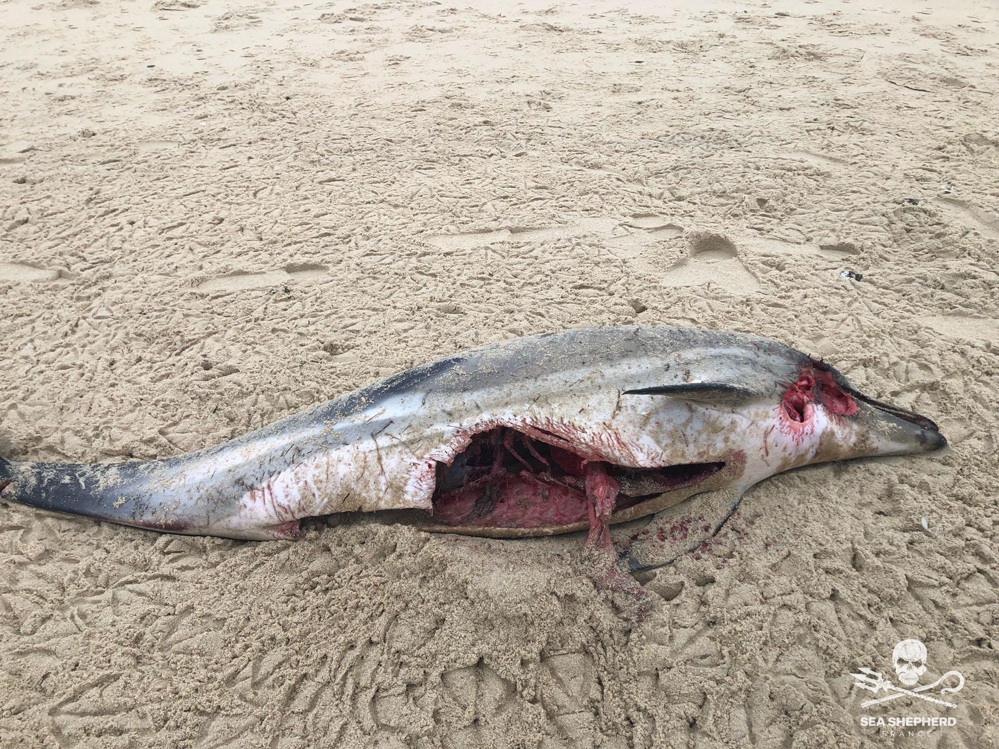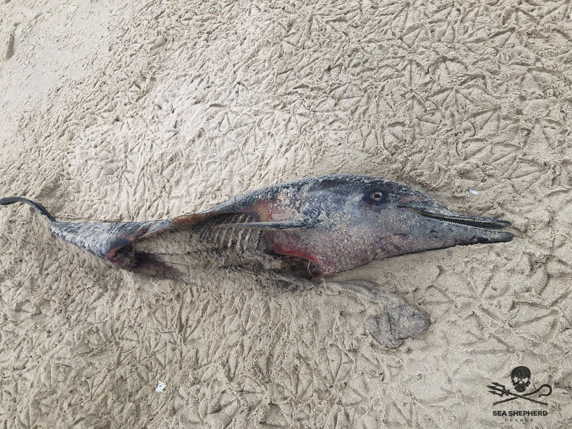 « La mer n'en finit plus de rejeter les cadavres de dauphins, capturés par les engins de pêche. Quand ces derniers sont mutilés, c'est qu'ils ont soit été consommés soit victimes d'une tentative de les faire couler pour masquer les preuves de capture» déclare Lamya Essemlali, Présidente de Sea Shepherd France. Une sympathisante de Sea Shepherd France a fait samedi 14 janvier une macabre découverte sur la plage du Grand Crohot, sur le littoral du Bassin d'Arcachon, 5 cadavres sévèrement mutilés et éventrés. Un autre a été découvert sur la plage de la Terrière à La Tranche sur mer, le 11 janvier.