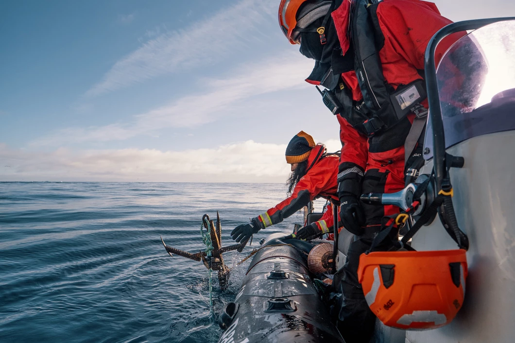 La responsable de la campagne, Lamya Essemlali, déclare : « L’incident a commencé lorsque nous nous sommes approchés du chalutier géant d’Aker QRILL à bord d’un petit bateau pneumatique à coque rigide (RHIB) et avons déployé une ancre à crochet pour endommager le filet et perturber la pêche du krill, nourriture essentielle pour les baleines.