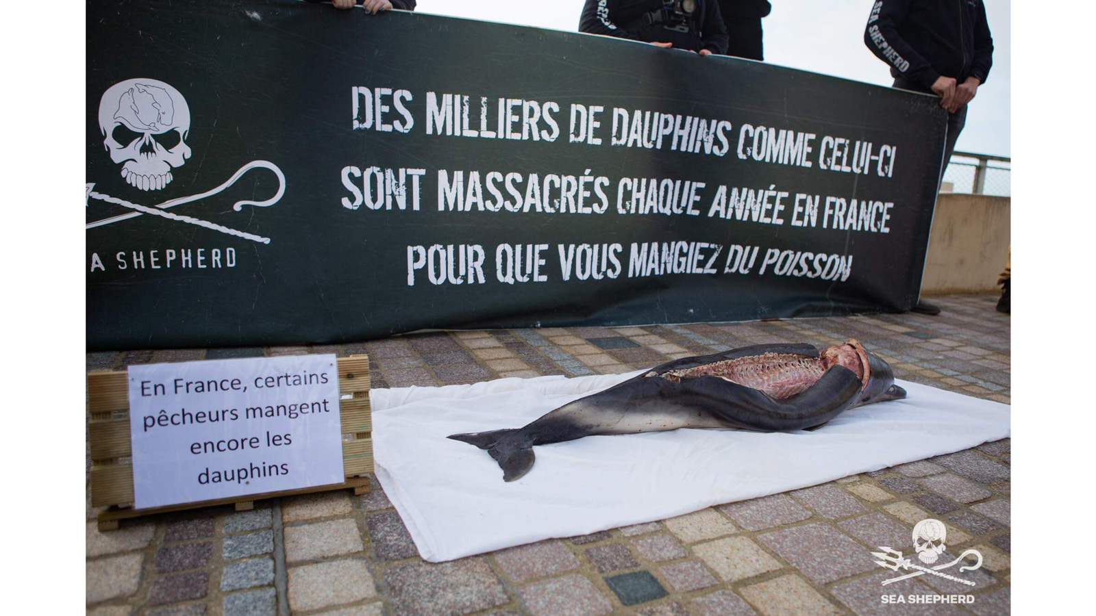 Les dauphins sont strictement protégés et la consommation de leur chair est interdite. Mais en mer il n’y a pas de surveillance et pas de témoins. Sur les milliers de dauphins qui meurent chaque année dans les engins de pêche non sélectifs, il est avéré que certains sont consommés par des pêcheurs qui les considèrent comme des poissons.