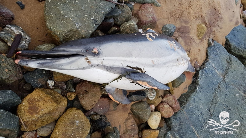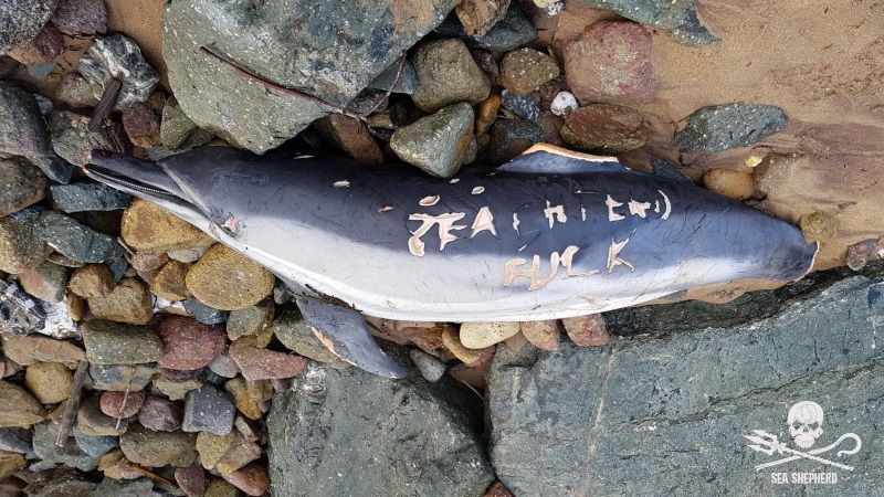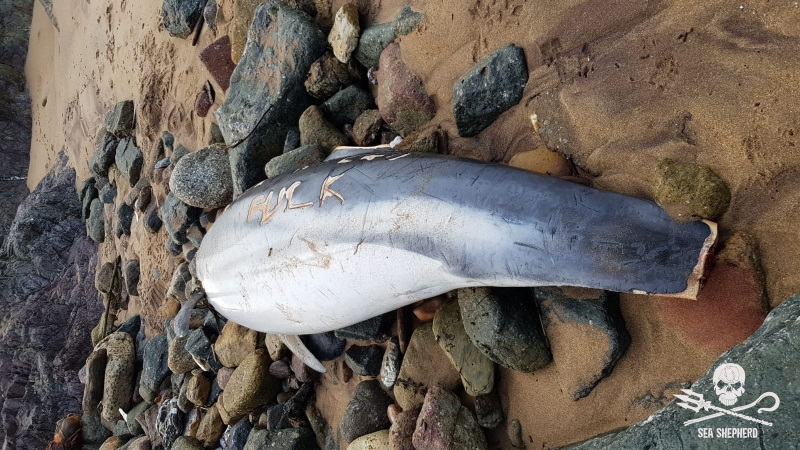 Un cap a été franchi hier avec la mutilation du corps d'un dauphin sur lequel l'inscription " Sea Shepherd Fuck" a été gravée au couteau.