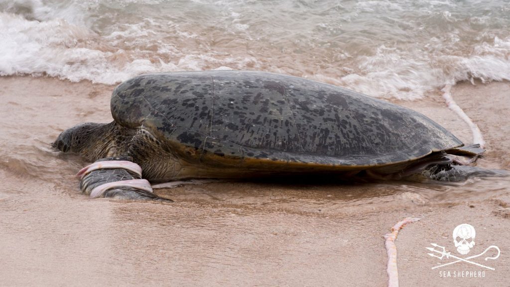 Dans la nuit du 26 juillet notre équipe est arrivée 15 minutes trop tard sur la plage de Papani, une plage où les tortues marines sont régulièrement braconnées. Alors que l'équipe surveillait les montées de tortues sur la plage voisine, un braconnier sur Papani s'est attaqué à une tortue qui venait de creuser son trou dans le sable pour y déposer son plus précieux trésor, ses oeufs. En voyant notre équipe arriver, le braconnier a pris la fuite mais il a eu le temps d'ouvrir la tortue sur 40 centimètres. Son bourreau parti, la pauvre tortue a rassemblé ses dernières forces pour se trainer vers la mer, semant ses entrailles et ses oeufs dans le sable. Elle est morte à un mètre de l'océan sans avoir pu l'atteindre.