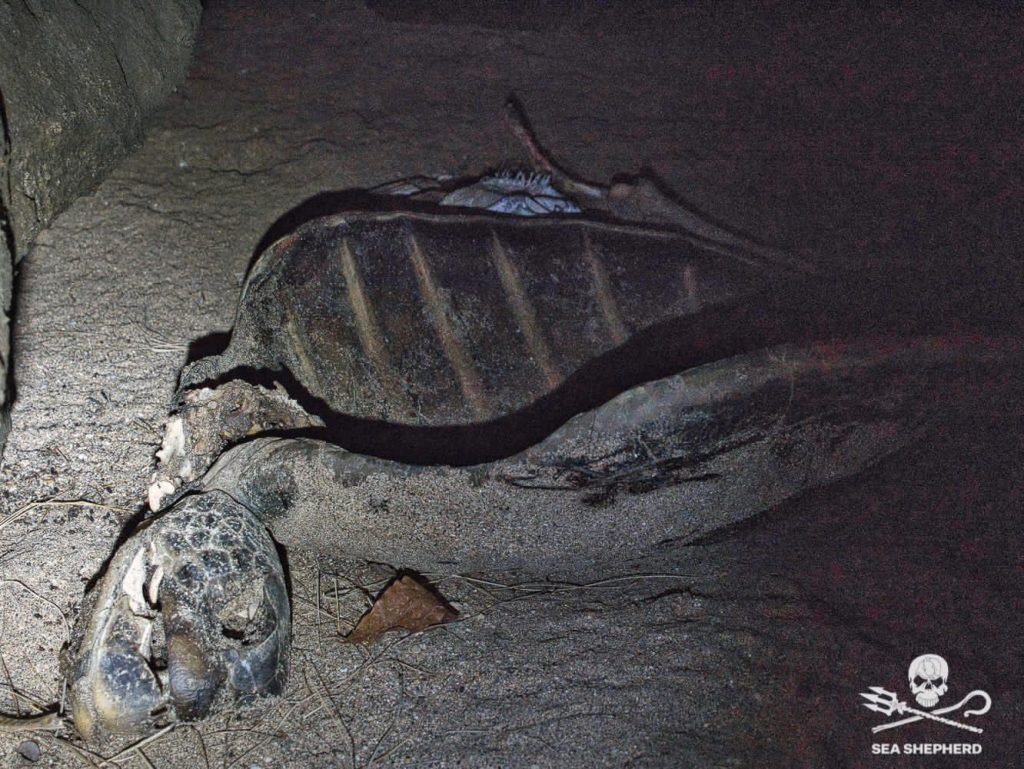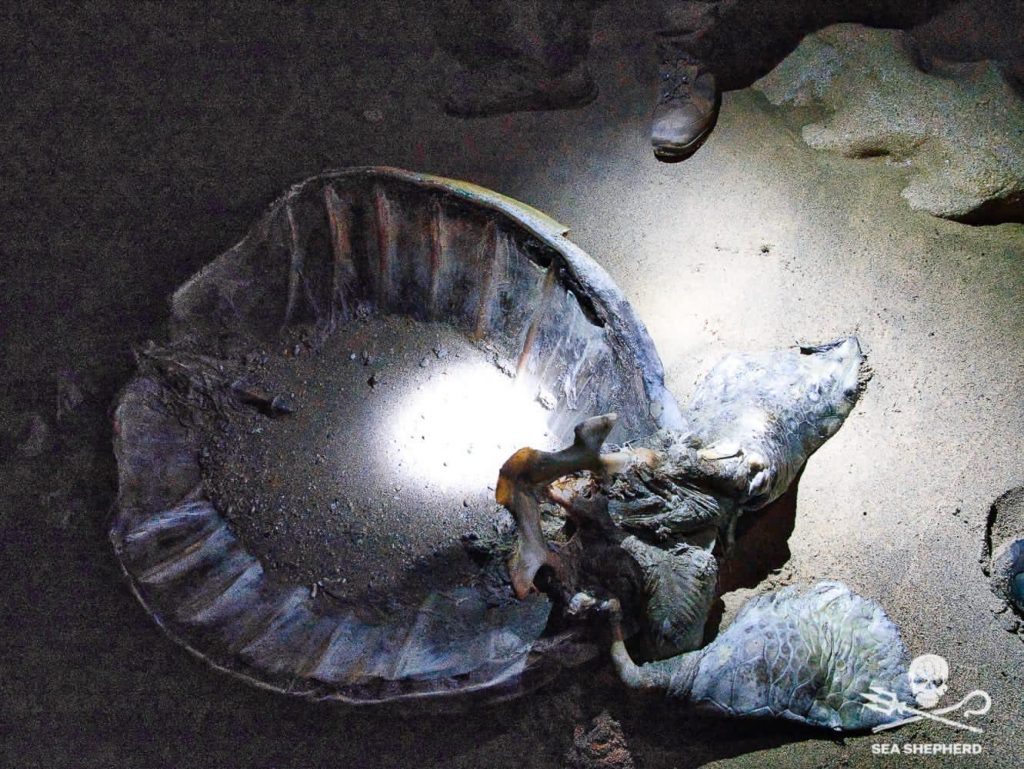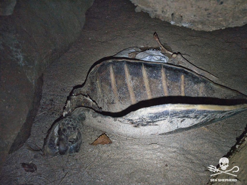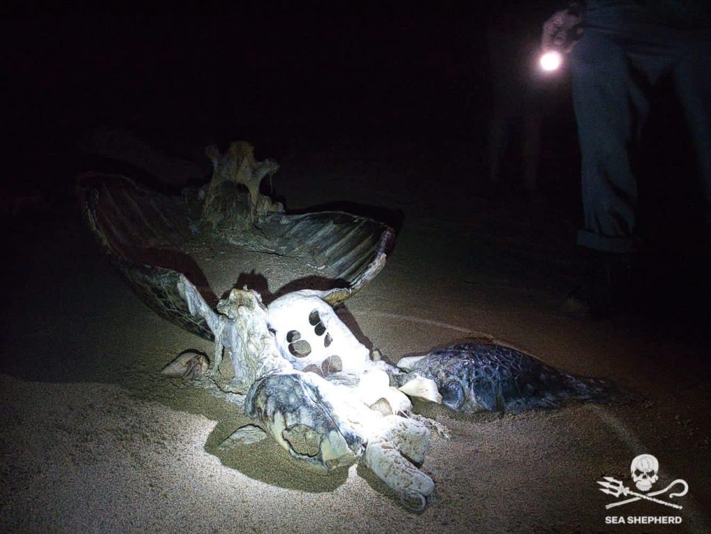 Quatre cadavres de tortues tuées il y a une petite semaine. Les braconniers sont revenus hier soir mais ils ont pris la fuite en voyant notre équipe et ont tenté de se diriger vers des plages à proximité. Une partie de l’équipe les a suivi et à réussi à quadriller toutes les plages de petite terre sur cette seule patrouille.