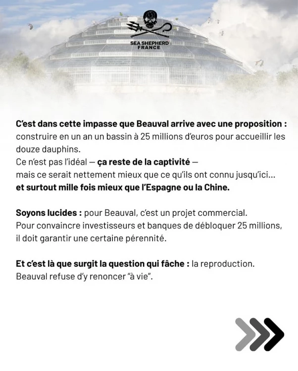 Si ces conditions sont posées, les investisseurs financent le projet, car il est pérenne, et surtout : on évite le pire pour les douze dauphins du Marineland.