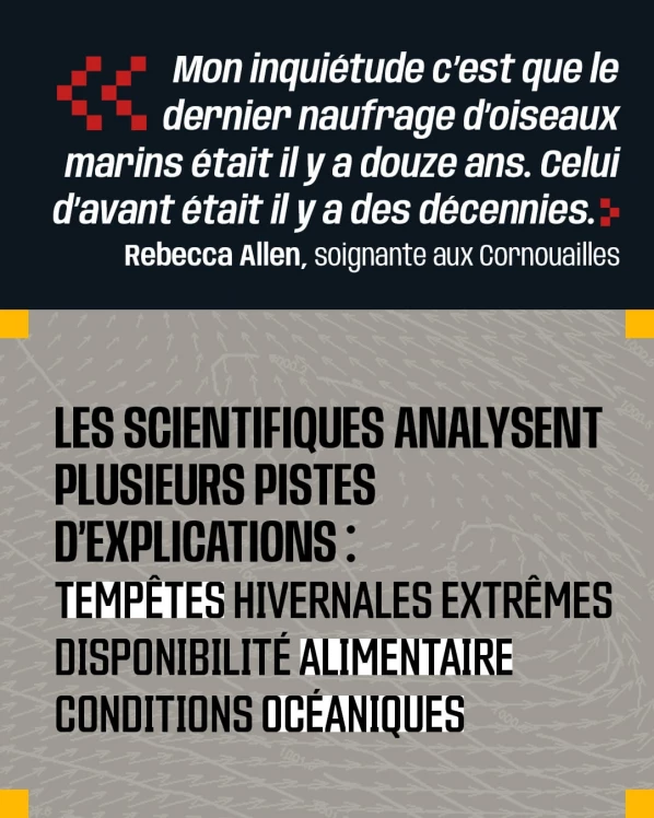 Mais dans les échouages d’oiseaux marins, les scientifiques estiment souvent que : 1 oiseau retrouvé peut correspondre à jusqu’à 10 morts en mer !