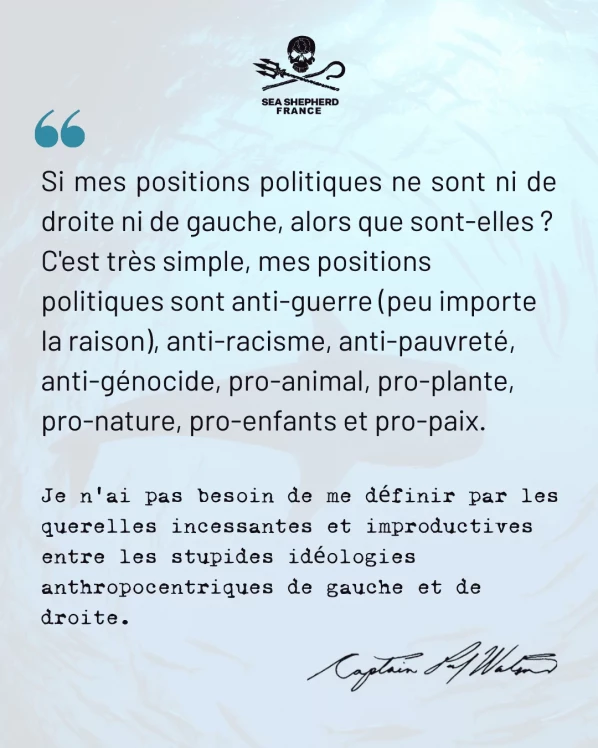 Je n’ai pas besoin de me définir par les querelles incessantes et improductives entre les stupides idéologies anthropocentriques de gauche et de droite.