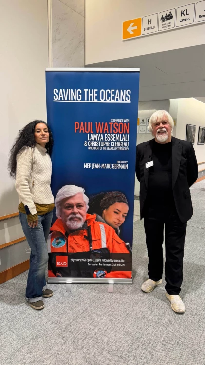 À l’invitation de Jean-Marc Germain, Paul Watson et Lamya Essemlali ont participé à une série de rencontres, débats et échanges avec des députés européens, leurs équipes, ainsi que des représentants de la Commission Européenne.