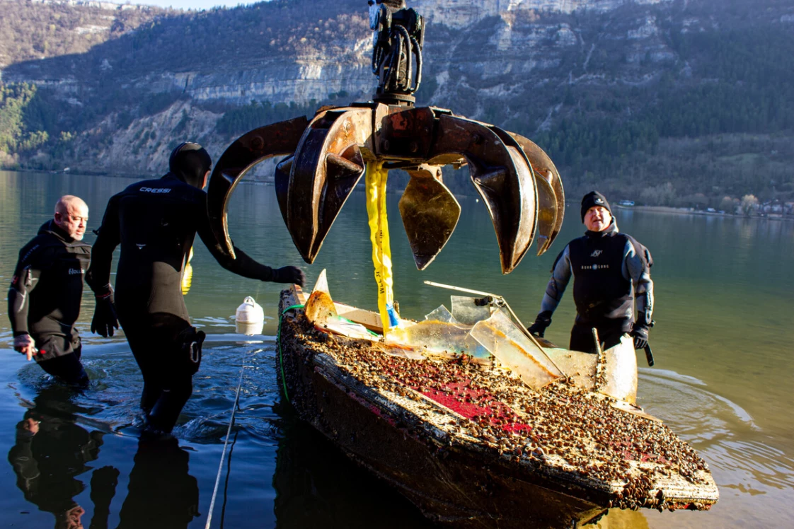 Elle s’est également étendue aux eaux intérieures françaises, dont les écosystèmes sont également victimes d’une pollution massive . Parmi les nombreux déchets retirés par nos plongeurs volontaires, le matériel de pêche est là aussi très présent : hameçons, lignes, nasses, leurres… Autant de menaces directes pour la vie aquatique et les oiseaux.