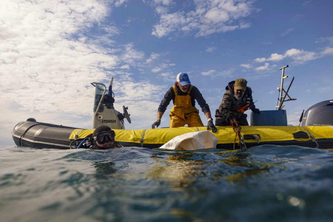 Les plongeurs de Sea Shepherd sont tous bénévoles et prennent sur leur temps pour participer aux opérations. Ils nous rejoignent par conviction. Une majorité d’entre eux sont aussi scaphandriers, actifs et à jour de leur CAH. Certaines entreprises en travaux sous-marins nous ont d’ailleurs déjà rejoints pour d’autres opérations. Pour cela, il n’y a pas de problème de compétence pour l’utilisation du matériel de relevage. Donc pour sortir des limites législatives du « qui peut faire quoi », nous avons les compétences au service de l’environnement et nous faisons ce qui doit être fait sans négociations financières.